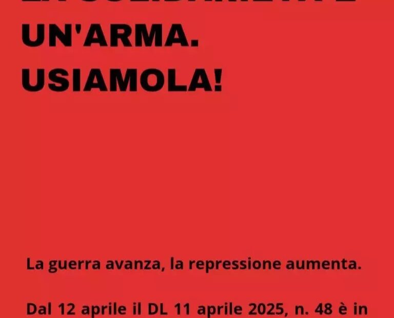 Il Coordinamento Nazionale No Nato invita a partecipare alle iniziative di lotta contro l’occupazione militare Usa-Nato del paese, contro la guerra e il riarmo e in solidarietà con il popolo palestinese che si terranno nel corso del mese di luglio. Ne riportiamo un elenco, non esaustivo, ma che dimostra che la lotta per liberare il paese dai guerrafondai non va in ferie, che la lotta per fermare la Terza guerra mondiale non va in vacanza! Diamo forza e sostegno a tutte le iniziative in programma, con spirito unitario, per alimentare la costruzione di un più ampio fronte di lotta contro… Leggi tutto »Iniziative e mobilitazioni di luglio: continuiamo ad organizzarci per fermare la Terza guerra mondiale!