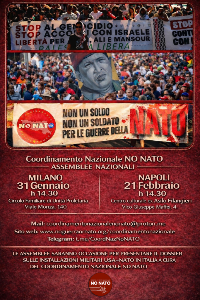 Le assemblee saranno inoltre occasione per presentare il dossier, a cura del Coordinamento Nazionale No Nato, sulle installazioni militari USA e NATO nel nostro paese.