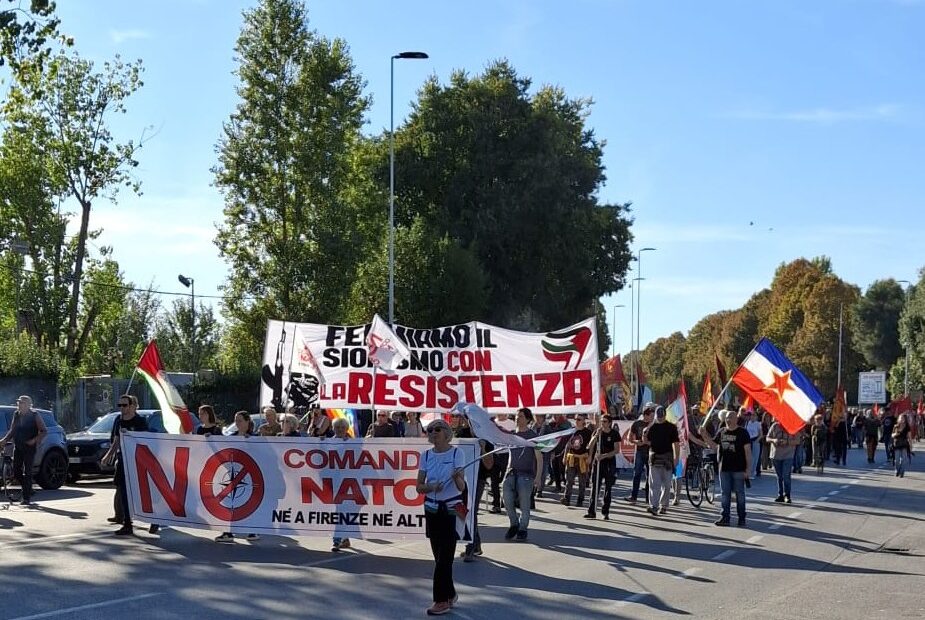 Dopo la manifestazione di sabato 11 ottobre organizzata dal Comitato NO Comando NATO né a Firenze né altrove abbiamo la necessità di fare il punto della situazione. Vogliamo fare un bilancio della giornata e riteniamo sarebbe importante che si sentissero coinvolte e prendessero parte al dibattito tutte le realtà che hanno partecipato e sono intervenute durante la manifestazione. Vogliamo in… Leggi tutto »GIOVEDÌ 16 OTTOBRE ASSEMBLEA DEL COMITATO ORE 21.00 AL CIRCOLO LA LOGGETTA